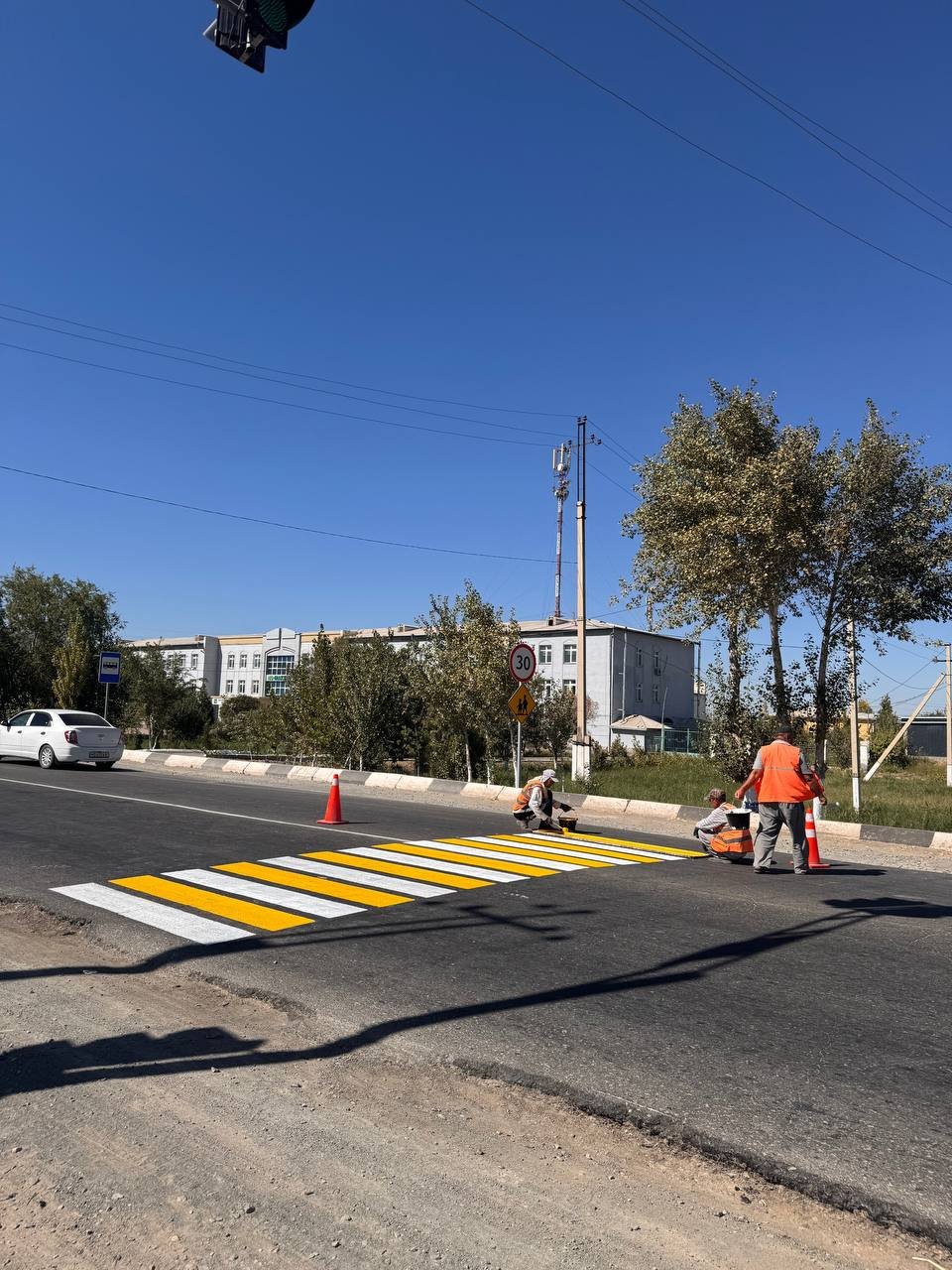 Xorazm yo'llardan muntazam foydalanish davlat muassasasi tomonidan Davlat axamiyatidagi D 216 ( 4 R 159) "Urganch sh-Shovot sh-Turkmaniston Respublikasi chegarasi " avtomobil yo'lining 0-11 km qismida yo'l yotiq chiziq chizish ishlari olib
