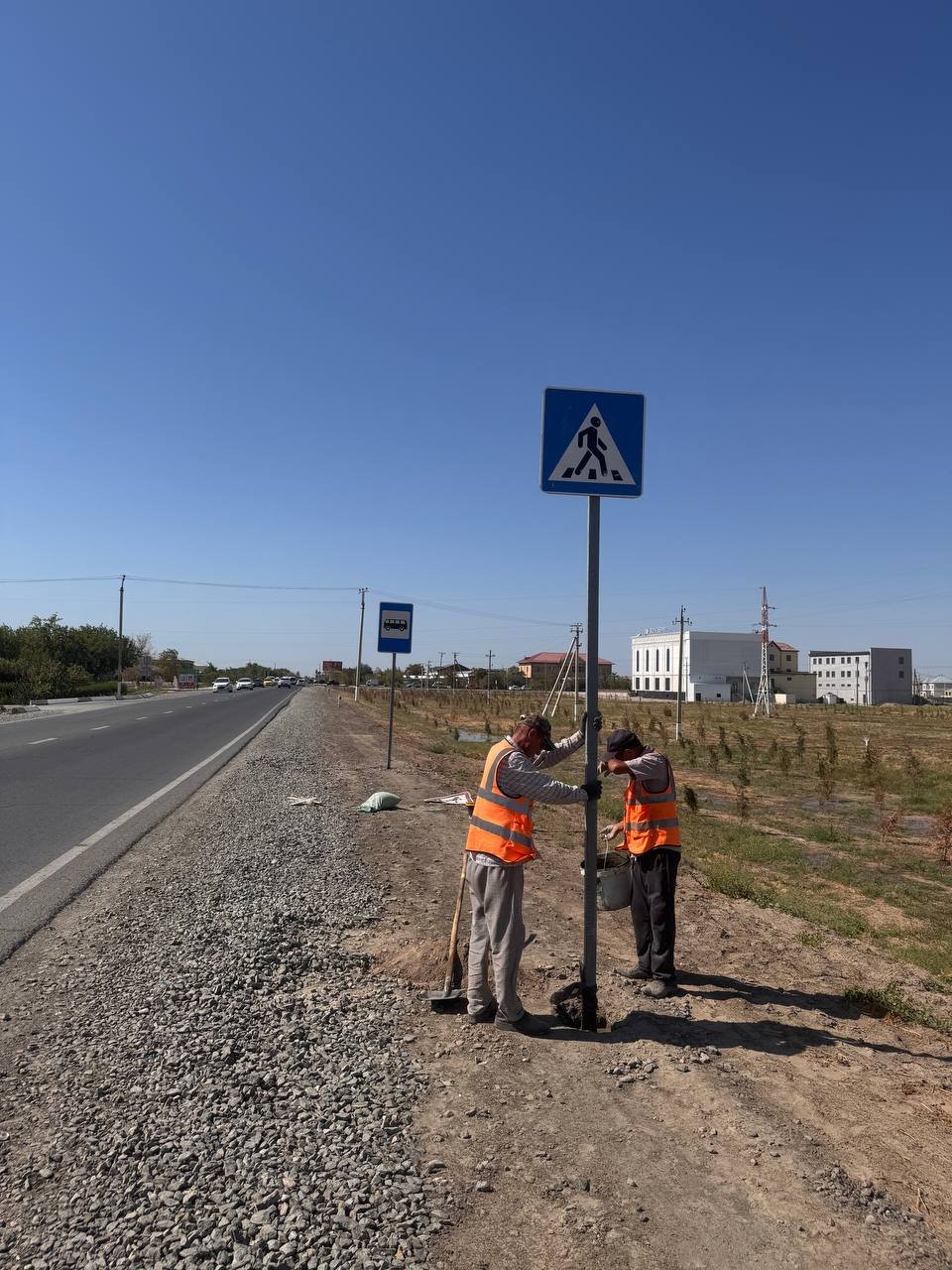 Xorazm yo'llardan muntazam foydalanish davlat muassasasi tomonidan Davlat axamiyatidagi D 216 ( 4 R 159) "Urganch sh-Shovot sh-Turkmaniston Respublikasi chegarasi " avtomobil yo'lining 2 km qismida yo'l belgi o'rnatildi va yo'l yotiq