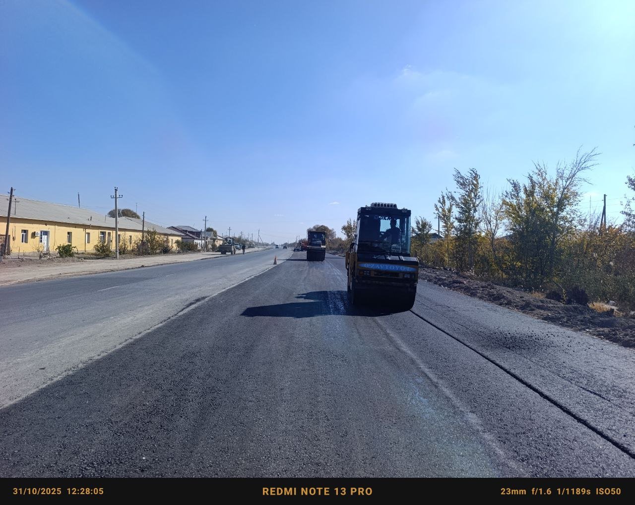 Xorazm yo'llardan muntazam foydalanish davlat muassasasi tomonidan 4 R 159 Urganch sh-Shovot sh-Turkmaniston chegarasi avtomobil yo'lining 42-km qismida asfalt yotqizish ishlari bajarilmoqda.