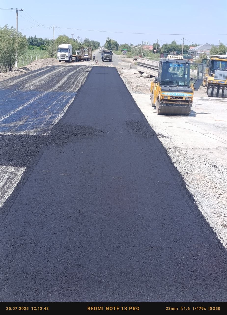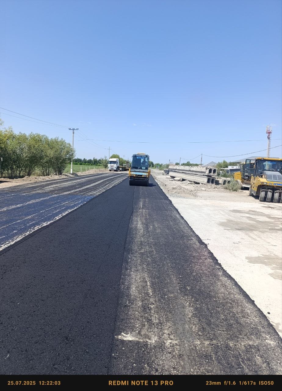 Xorazm yo'llardan muntazam foydalanish davlat muassasasi tomonidan 4 R 159 Urganch sh-Shovot sh-Turkmaniston chegarasi avtomobil yo'lining 42-km qismida asfalt yotqizish ishlari bajarilmoqda.